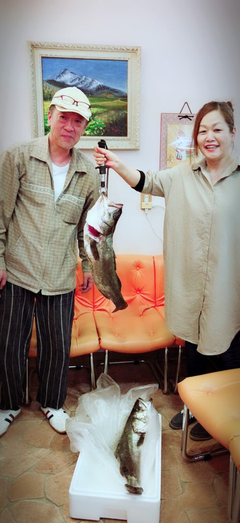 お客さまが またまたスズキを釣ってこられて頂いたのでスタッフのゆかりちゃんがさばいてくれて みんなで感謝してゴチになりまちた(^_^) とても美味しかったょ〜! スズキくんありがとう(*≧∀≦*)